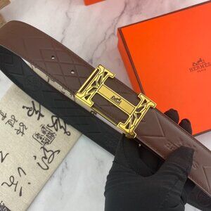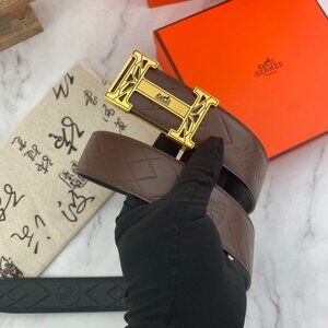 Experience impeccable quality with this Hermes belt. The striking gold ‘H’ hardware stands out against the beautifully crafted brown leather, ensuring a sophisticated finish. Size: 105