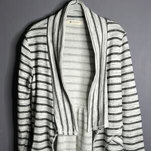Impeccable Pig Gray and White Striped Open Long Sleeve Cardigan Sweater Size S