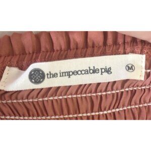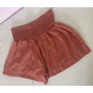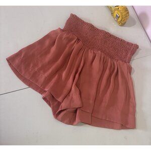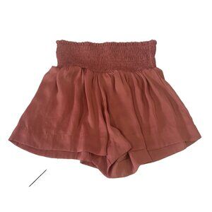 Impeccable Pig Womens Smocked Shorts Burnt Orange Color Pleated Wide Leg Stretch