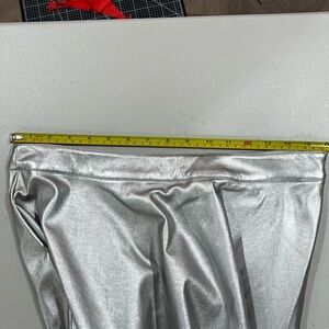 Imperfect Silver Vegan Leather Skirt with Laser-Cut Hem
