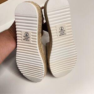 Poshmark’s AI description: Elevate your summer style with these chic espadrille sandals. Featuring a comfortable fabric upper and tan straps, these sandals are perfect for any casual outing. Enjoy the blend of fashion and comfort with every step.
