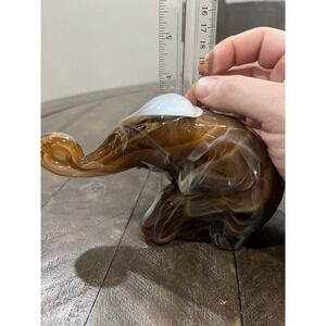 The multicolor brown glass elephant with an impressive backstamp and intricate details is perfect for animal lovers. This vintage glass figurine, weighing around 1-2 lbs, is a great addition to your glassware collection or a unique gift for your loved ones.