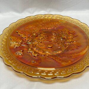 Imperial Carnival Glass Marigold Plate With Sunflower Design & Scalloped Edge