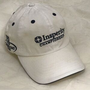 B1 Hat/Cap Imperial Made in Vietnam Adult Adjustable Strap with Buckle Insperity Championship type logo on face, Champions Tour patch on side, presented by United Healthcare type on rear; all in Black / Offwhite hat with Black trim 100% Cotton