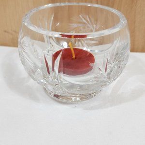 - Cut Curve Under Pinwheel and Star, Lead Crystal Round Tea Light Votive Bowl