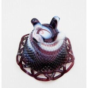 Imperial Diamond Lace Candy Dish Pattern Purple Slag Three Toed Glass Bowl