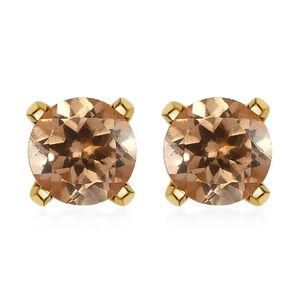 Premium Ceylon Imperial Garnet Solitaire Stud Earrings 14kt Yellow Gold Vermeil. At Just Over One Carat Each You'll Love This Gorgeous Stone. It Displays A Range Of Stunning Tones From Golden Honey-Peach!