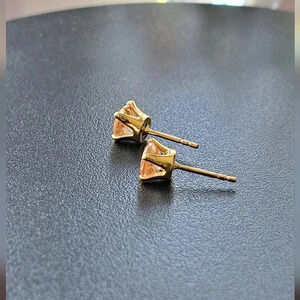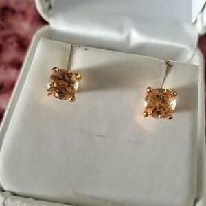 Premium Ceylon Imperial Garnet Solitaire Stud Earrings 14kt Yellow Gold Vermeil. At Just Over One Carat Each You'll Love This Gorgeous Stone. It Displays A Range Of Stunning Tones From Golden Honey-Peach!
