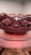 Imperial Glass Co. Lace Edge & Diamond patterned Burgundy Glass Bowl Dish