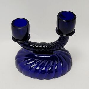 Imperial Glass Cobalt Blue Swirl Pattern Double Candle Stick Holder 1 Pc