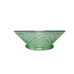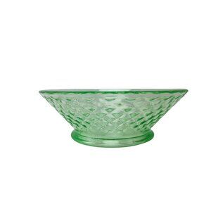 Add a touch of vintage elegance to your home with this stunning Imperial Glass diamond quilted green footed bowl. Measuring 6-5/8 inches in diameter, this exquisite piece showcases the classic diamond quilt pattern that Imperial Glass is renowned for, making it a perfect addition to any collection or home decor.