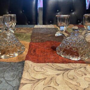 Set of Vintage (1940s) imperial Glass "Katy" Lace Edge Double Candlestick Holder.