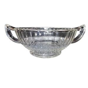 This 5-inch Imperial Glass Ohio Nappy Huckabee round bowl features clear glass with a swirling star design and a convenient handle. Classic and elegant, it's perfect for serving or display.
