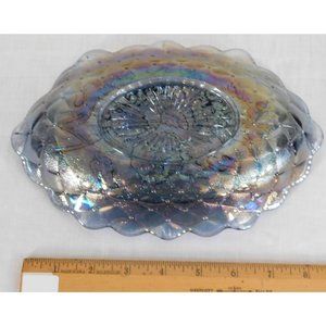 Imperial Glass Pickle Relish Dish Quilted Pansy Smoke Blue Iridescent Carnival