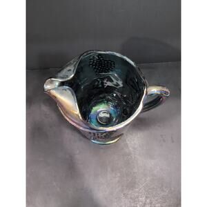 Imperial Grape Leaf Carnival Glass Pitcher, Cobalt Glassware, Carnival Pitcher