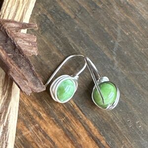 Imperial Jade drops silver dangle earrings/ luck and joy healing crystals