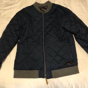 This is a reversible quilted bomber jacket, size Large. I have worn this one time, it is very warm and you cannot even tell that it is reversible! Great jacket, just a little too big for me