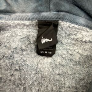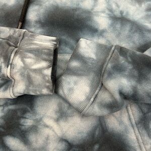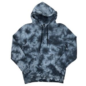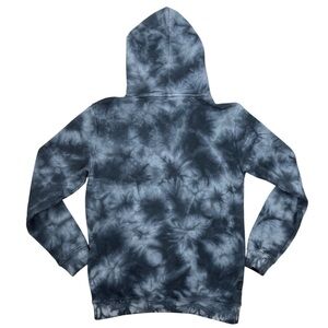 Bluish gray tie dye acid print hoodie. Hidden pocket inside kangaroo pocket.