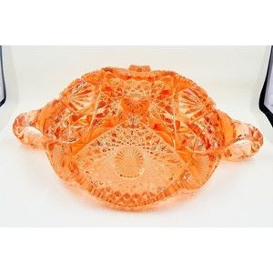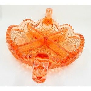 Imperial Pressed Glass Crystal Divided Relish Dish Two Handle Sawtooth Edge