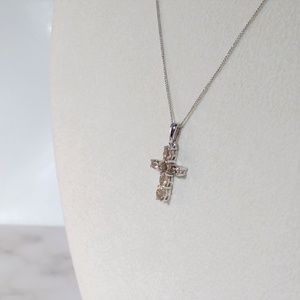 The platinum over sterling silver cross measures ¾” long and 1/2" wide.