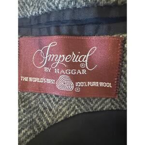 Classic Imperial by Haggar men’s blazer. Made in the USA from 100% wool for a timeless, high-quality look and feel. Features a 29” length, 20” pit-to-pit (approx. 40” chest), and 23.5” sleeves. Perfect for formal wear, business, or vintage-inspired styling. Pre-owned and in good condition.