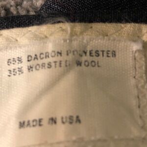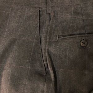 Imperial by Haggar men’s dress pants size 34-29, flat front, 4 pockets, one pocket in back has button closure. Dark grey with a beautiful triangle light pinstripe pattern. Made in USA. Pre-owned lightly worn. Please see pictures