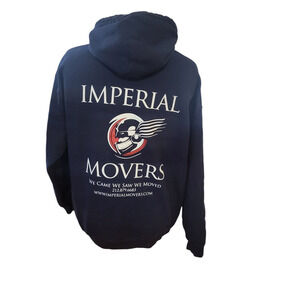 Imperial movers pre owned hoodie with classic front pocket, size large