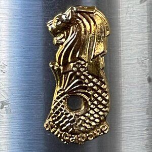 97% pewter Imperial Singapore mug with merlion badge hammered accent rings