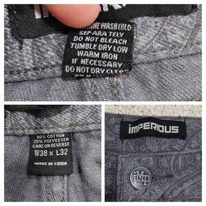 Imperious AOP Paisley Bandana Printed Men's Jeans Grey, Straight Leg, Mid Rise Y2K. Sz 38x32.