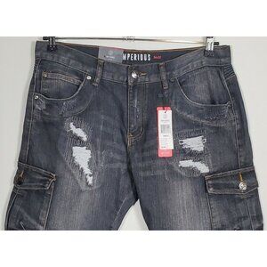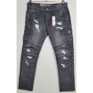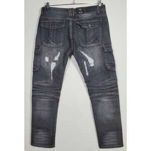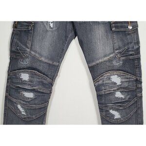 Imperious Men 34 x 32 Black Denim Skinny Fit Distressed Biker Pants / Jeans