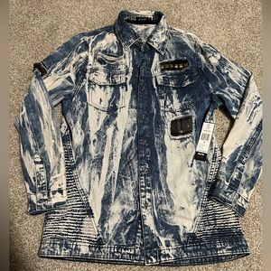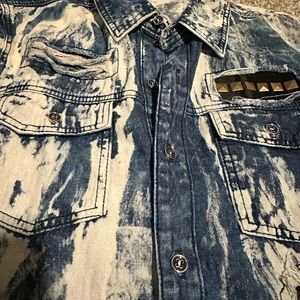 Imperious New York Denim Ripped button up shirt Blue Medium Mens 100% Cotton