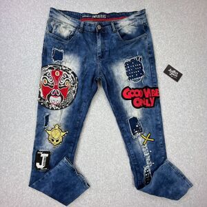 Imperious Slim Straight Jeans Mens 36 x 32 (38x32) Embroidery Grunge Lucha Libre