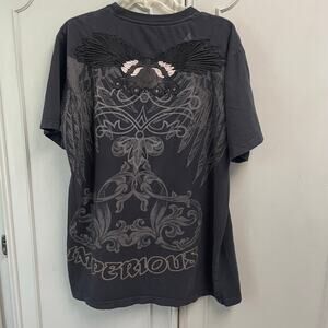 Imperious Y2K 90s Grunge Affliction Style Tee Size XL Fleur De Lis Wings Texture
