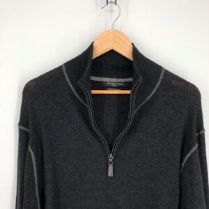 Impermeable Platinum Mens Sweater Size L Charcoal Merino Cashmere 1/4 Zip