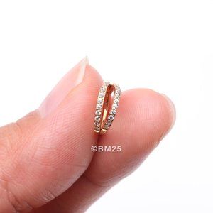 Implant Grade Titanium Golden Double Hoop Gems Seamless Clicker Ring - 8mm