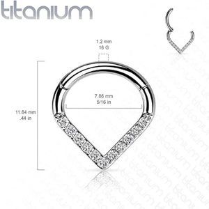 Implant Grade Titanium Hinged Segment Nose Ring Septum Hoop Ring Single Line CZ