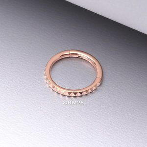 Implant Grade Titanium Rose Gold Pyramid Studded Geometric Clicker Ring - 10mm