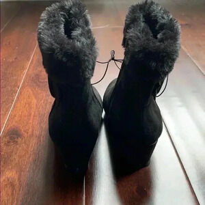• 1 1/2" Rugged Faux Suede Covered Wedge and Non-Skid Outsole