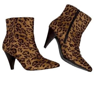 Impo Leopard Print Brown & Black Ankle Booties, Faux leather, Side zip closure, Memory foam footbed. Reflect minor flaws, Please review photos. Approx heel Height 3 1/4.