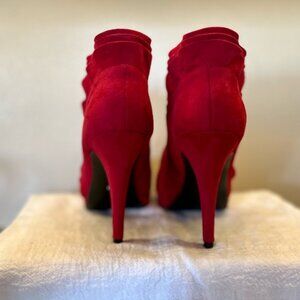 Chic red heels with stylish ruffle detail. Perfect for elevating any outfit.