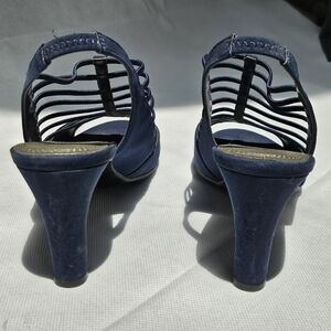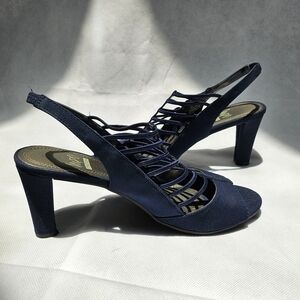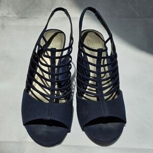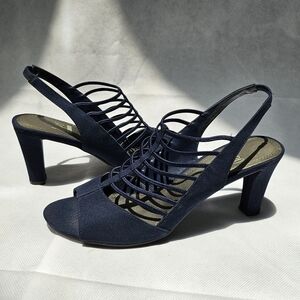 Impo Stretch Vila Navy Blue Fabric Strappy Slingback 3in Heels Size 9