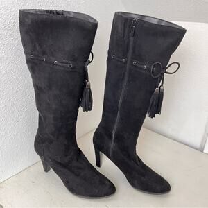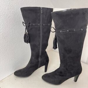 Impo Stretch black faux suede knee high heeled boots 10