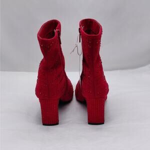 Impo Virgie Red Rhinestone Ankle Boots Women 6M Pointed Toe Heel Zip Maximalist