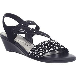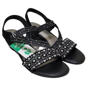 Impo Women Gatrina Embellished Slingback Wedge Sandals Size US 7M Black Stretch