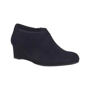 The Impo Women's Ginger Stretch Memory Wedge Shooties in black, size 11M, are a stylish and comfortable option for both casual and workwear occasions. These ankle boots feature a flat heel, suede lining, and adjustable ankle strap for added convenience. The synthetic upper and outsole materials ensure durability, while the supportive synthetic insole provides comfort. Perfect for the winter, fall, and spring seasons, these shooties are a versatile addition to any woman's wardrobe.