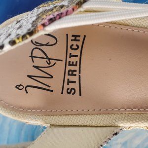 Impo stretch Taedra multicolor Phyton print wedges platform slip on sandals 8.5