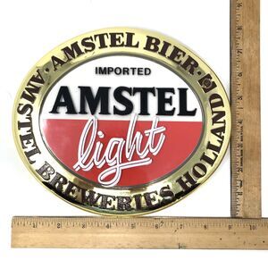 Vintage Hard Plastic Imported Amstel Light Beer Sign, Amstel Bier Breweries Holland Van Munching & Co. Hanger on back, one sticky pad used. Measures approx 9" x 8"