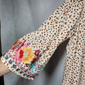 Impressions Boho Hippie Artsy Leopard Embroidered Top Cream/Camel Size S,