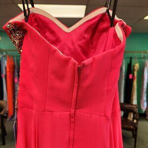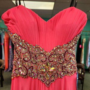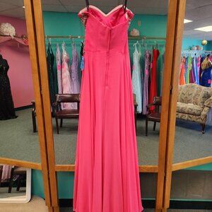 Pink Size 0, in good shop worn condition. Has only been tried on by our customers searching for the perfect dress!