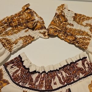 This stylish cream blouse from Impressions showcases a charming ruffled design and a chic gathered collar. Crafted from lightweight fabric, it offers a comfortable and elegant fit, perfect for any occasion.